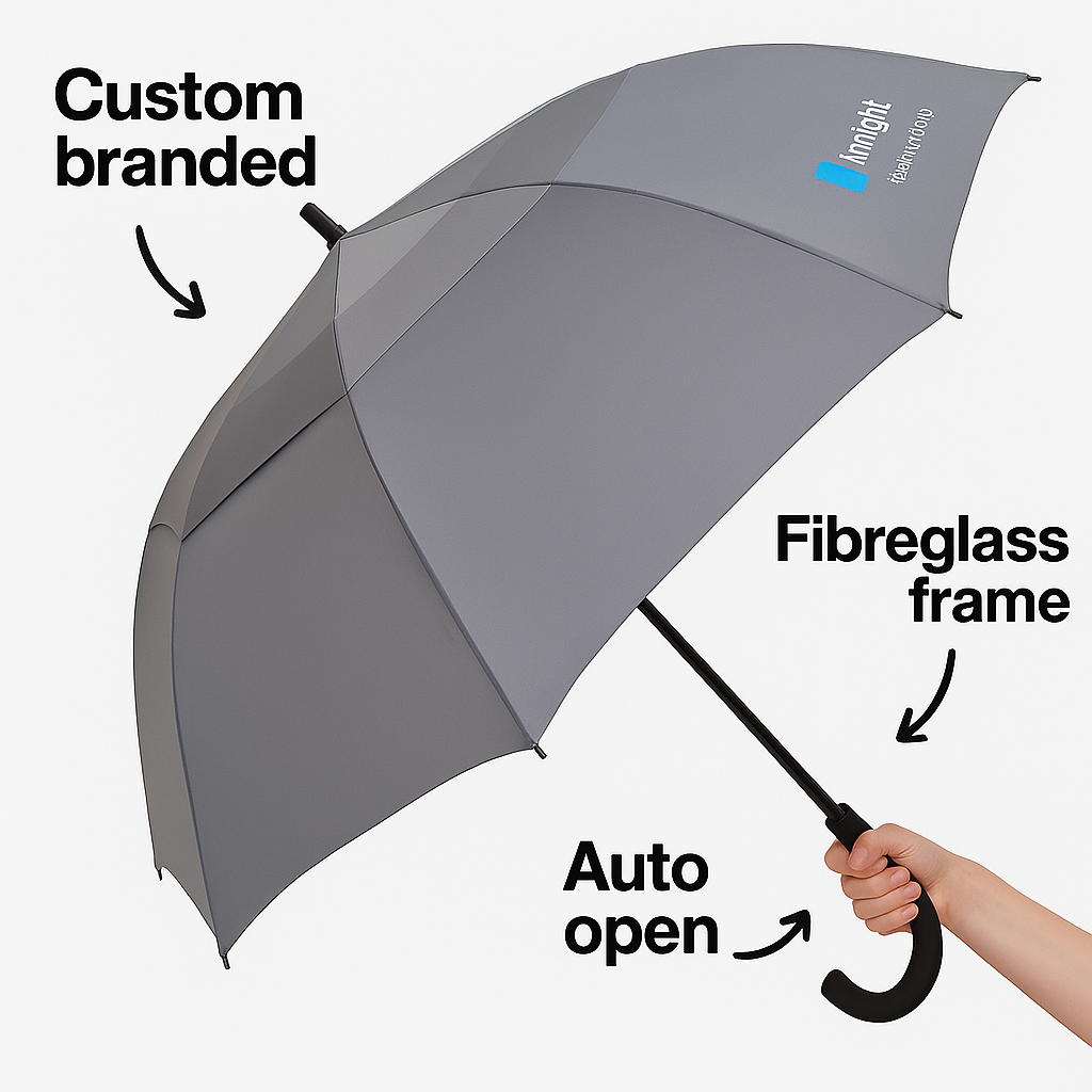 Need a customised design? Contact us to discuss your bespoke branding options and create an umbrella that reflects your company’s professional image.